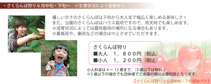 さくらんぼ以外は露地栽培のため雨天時中止となりますのでご注意ください。